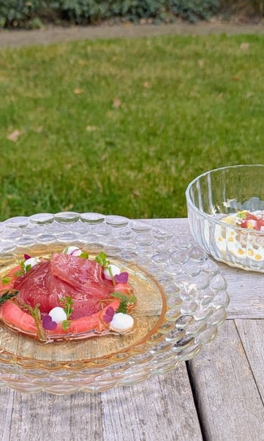 Private dining is een concept waarbij er een lunch of diner wordt verzorgd bij u thuis. Dit betekent dus dat u hier verder geen werk aan hebt, uw tafel wordt gedekt, de gerechten worden gemaakt en geserveerd en u kunt ook de wijn en dranken volledig door mij laten verzorgen. Private dining is dus een perfecte optie voor uw jubileum, business lunch/diner of voor een overheerlijke lunch of diner met familie en vrienden.